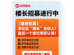 “时间驿站”合作店铺设计的楼长招募广告牌文案【重磅招募】本社区“楼长”合伙人!最后一个席位,等您认领!亲爱的邻居:您是否...