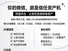 同壹共生 · 微信信任资产计划——0元入群,1元启动,7天裂变,30天成型,90天自动运转一、核心理念:你的微信,就是你的终身资...