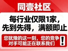 携手同壹,做您行业的社区唯一—— 每行业仅限一席,共筑社区品质生活圈 尊敬的老板:在您为经营奔波、与平台佣金抗争时,...
