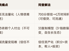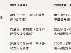 以信任资产化+生态裂变+金融杠杆为核心,强化“可量化信任”“自生长生态”“低获客成本”三大壁垒,用数据可视化+模型拆解+行动...