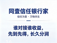 同壹·信任银行家招募令信任为壹 · 万物共生—— 抢占社区信任经济红利,锁定终身管道收益!你是不是受够了帮别人打工?受够了...