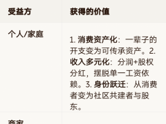 社区商家参与“满100赠10积分” · 核心价值白皮书信任为壹 · 万物共生—— 这不是让利,而是投资社区“终身客户”的股权一、核...