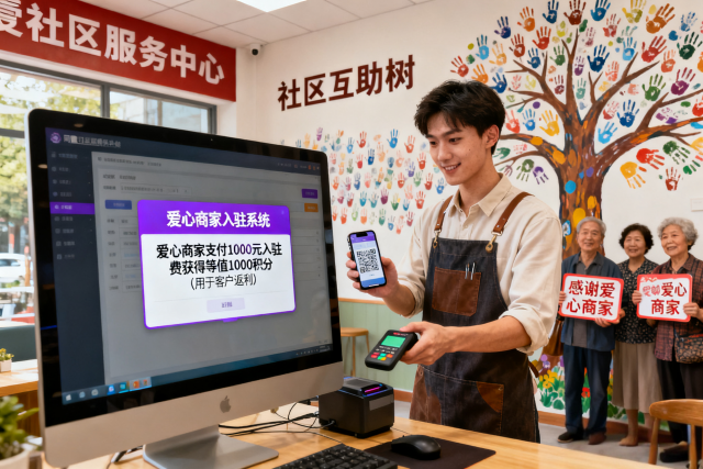 1. 支付1000元入驻费 → 获得等值1000积分(用于客户返利)。