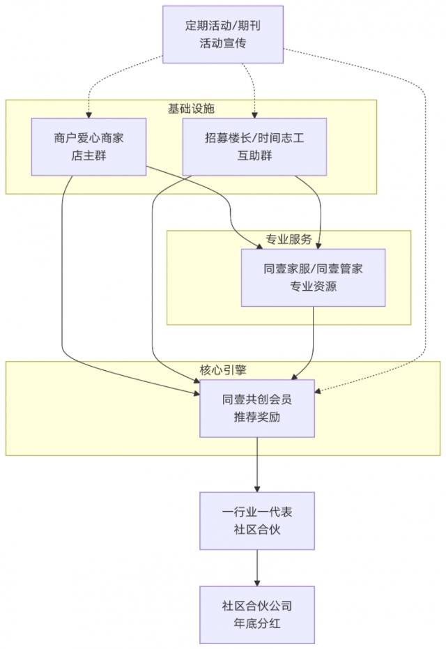 · 动作: 当社区成熟后,成立社区合伙公司,邀请核心楼长和商户入股,共享该社区年底分红。