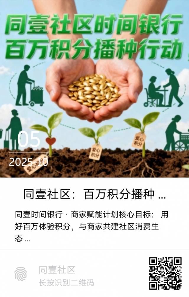 · 社区商家:加入“百万积分播种行动”,成为社区经济生态的创始共建者,把营销成本转化为增长资产。