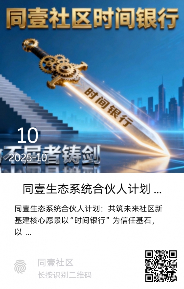 · 话术: “您平时买菜、理发、买东西的钱,只是花掉了。但在同壹社区,这些钱会按比例变成‘时间积分’返还给您。今年1小时积分值25块,明年可能就值27块。您的日常消费,从成本变成了资产。”