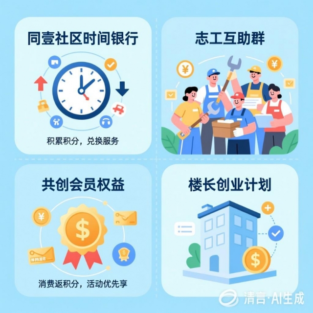 · 邻里互助: 帮助邻居(如接送孩子、分享技能、代取快递),收获“小时积分”。