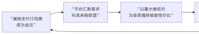 A[“居民支付订阅费 成为会员”] --> B[“平台汇聚需求 形成采购联盟”]