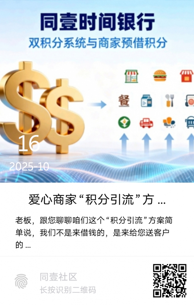 · 您不是平台的“流量”,而是社区的 “主人” 。通过社区信用合作社,您能共享生态发展的红利。这种 “利益共同体” 的关系,建立了最深度的粘性。