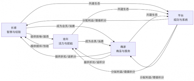 A[长者 智慧与经验] -->|提供指导/服务| B[青年 活力与技能]