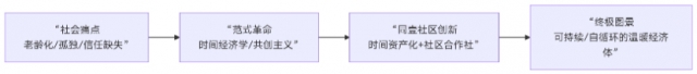 A[“社会痛点 老龄化/孤独/信任缺失”] --> B[“范式革命 时间经济学/共创主义”]