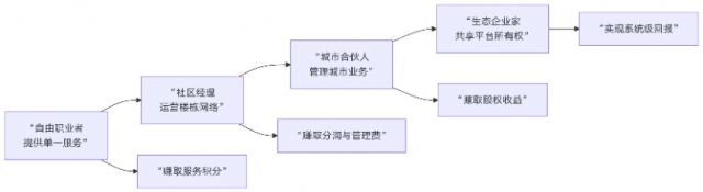 A[“自由职业者 提供单一服务”] --> B[“社区经理 运营楼栋网络”]