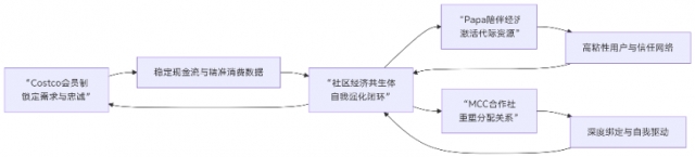 4. 【裂变】 共建者为自身利益,会主动推广平台,吸引更多会员和商家,进一步壮大 Costco 的网络和 Papa 的服务生态,让飞轮持续加速。