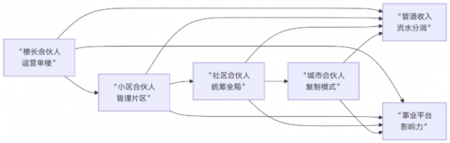 A[“楼长合伙人 运营单楼”] --> B[“小区合伙人 管理片区”]