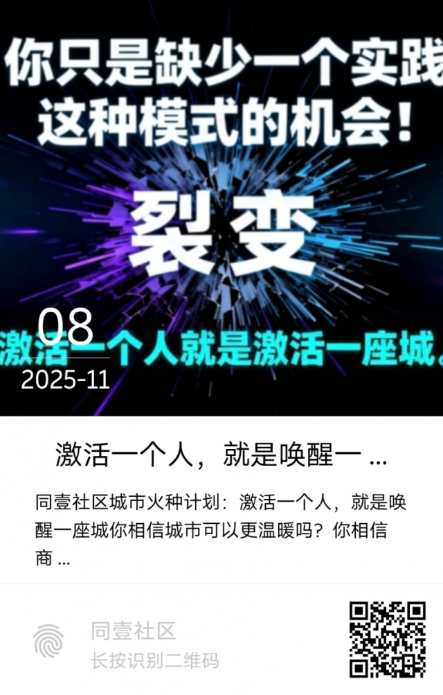 郑重声明:同壹社区为共创型互助生活平台。时间积分与信用体系为社区内服务记录与激励凭证,非金融产品,不可提现。真正的财富,始于心念的转变与共同的实践。