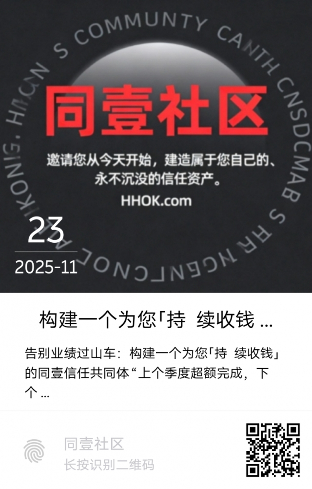 “我们深知,同壹VIP的模式并非适合所有人。它需要像您这样有远见、能识别真正价值的伙伴。您的加入本身,就是对社区理念的最高认可。在这里,您的意见和建议会受到高度重视,因为我们是民主治理的合作社。我们相信,以您的智慧和判断力,一定能看到这份事业背后超越金钱的长期价值与社会尊重。”