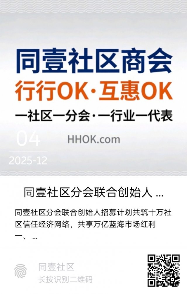 同壹社区商会,期待与您一同,在这片信任的土壤上,建造属于我们所有人的文明之城。