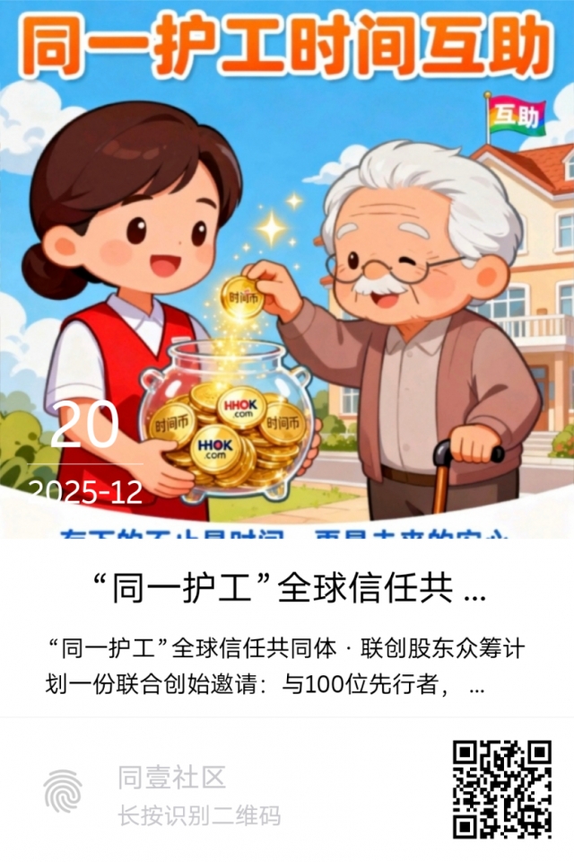 3. 终身服务: 您存储的“时间积分”,可在全国网络内兑换真实的护工照护、邻里帮助,实现 “今日存时间,明日换安心”。