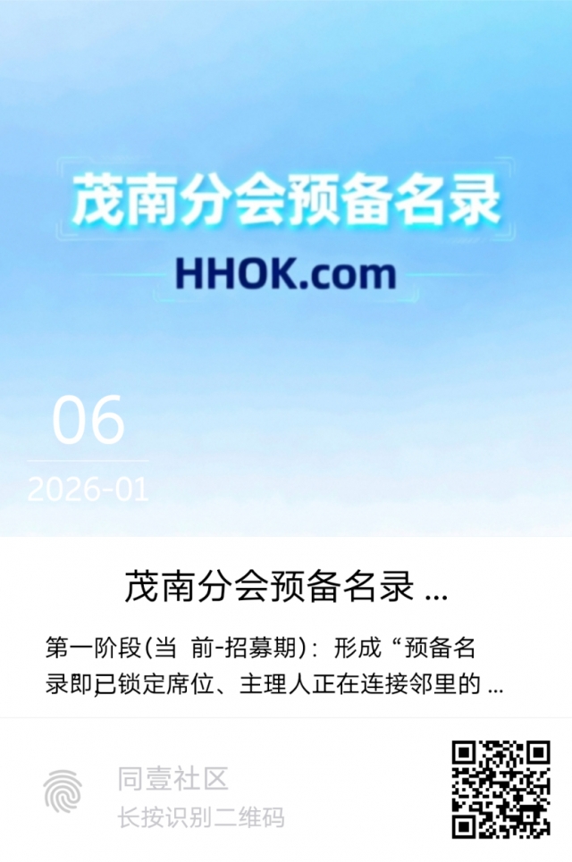 3. 正式上任,点亮名录:成功通过后,你的社区将作为 “创始分会” ,载入同壹社区茂南分会的正式名录与运营地图,并获得全套启动支持。
