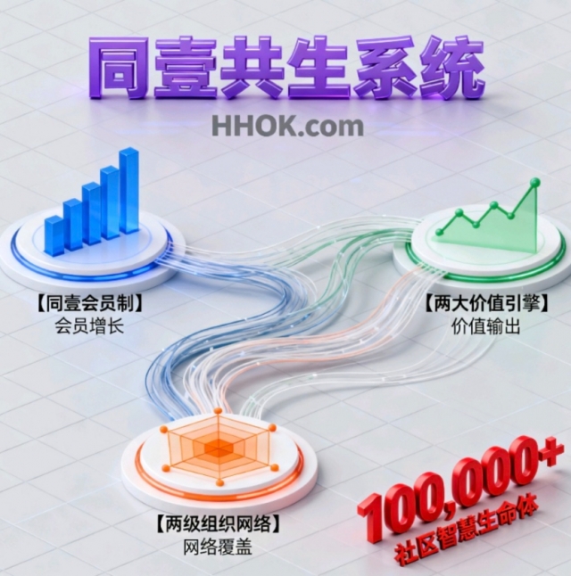 【同壹会员制】x 【两大价值引擎】x 【两级组织网络】= 【十万社区智慧生命体】