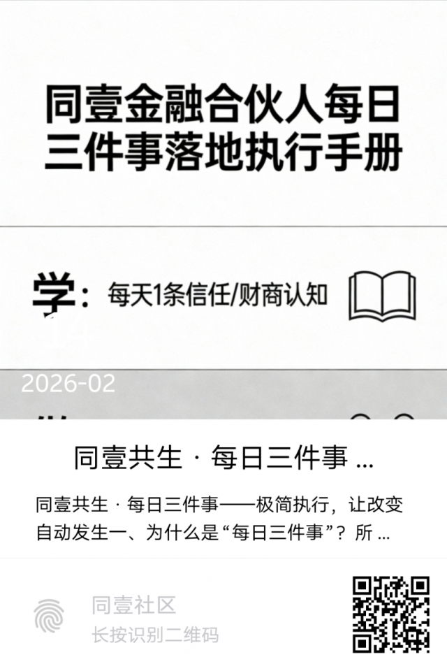 同壹金融合伙人 · 每日三件事「落地执行手册」