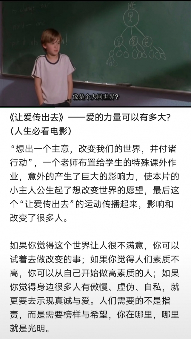 《让爱传出去》电影链接地址:https://mp.weixin.qq.com/s/fMv8_j-2lZ2MbN1CxSHYeQ