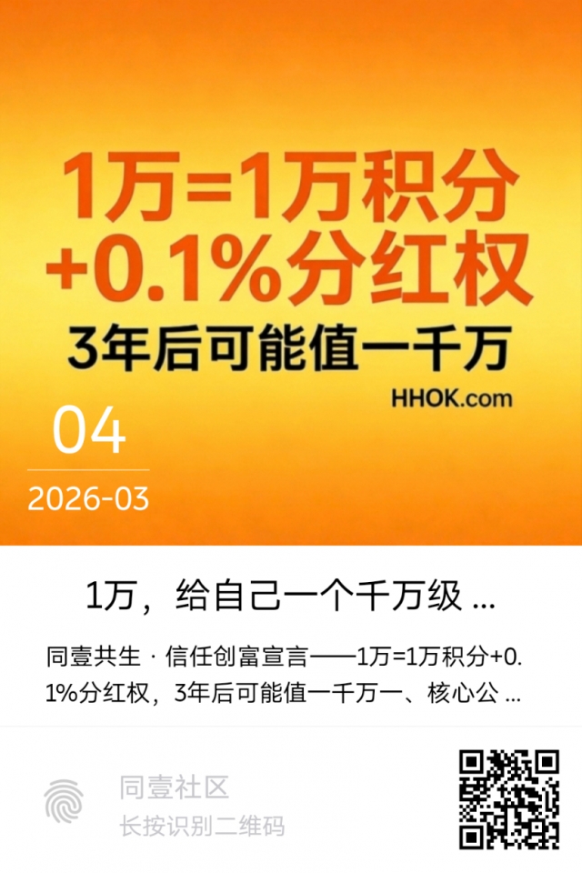 1 万 = 1 万积分 + 0.1% 分红权 = 一个千万级未来的入场券。