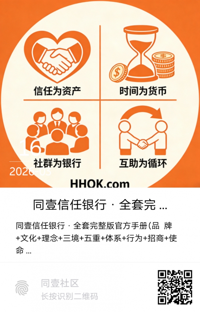 同壹,就是要做全球第一家信任银行——把你的时间、善意、靠谱、人脉,变成可存、可借、可增值、可传承的终身资产。