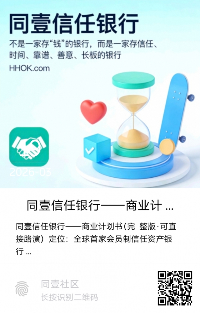 同壹信任银行,把信任、时间、付出、靠谱、链接变成可量化、可积累、可流转、可传承的资产。