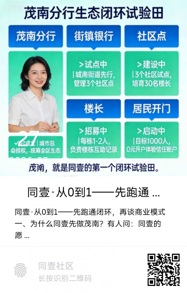 ✅ 茂南跑通,同壹就活;茂南做成,全国就来