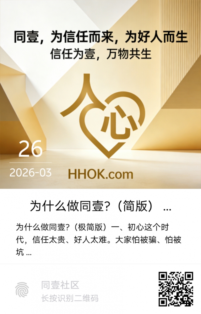 核心金句:同壹不赚你的钱,只帮你存信任。你存的信任,就是你的资产。