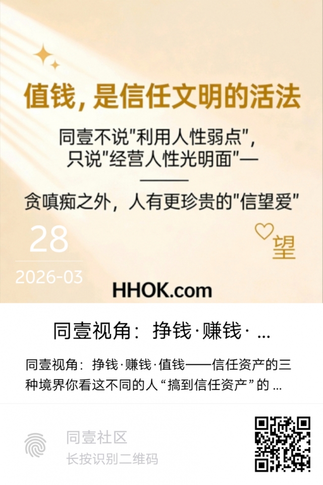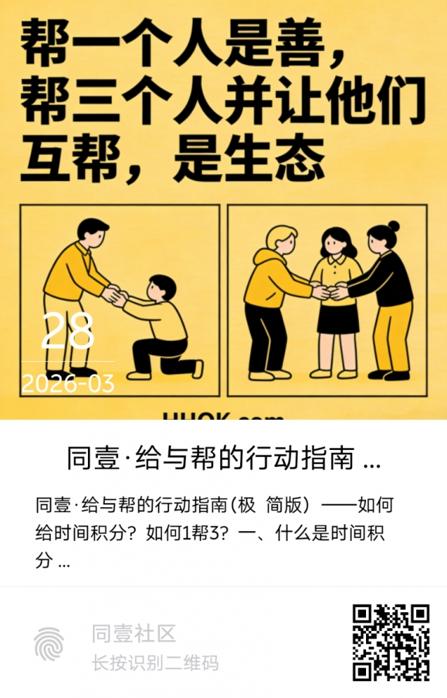 同壹HHOK.com以“信任为壹,万物共生”为根,让每个人、每个商家都能成为“信任银行家”——不赚产品差价,只做信任流通;用时间积分存善意,用1帮3传信任,让“我为人人·人人为我”从口号变成可落地的创富路径。