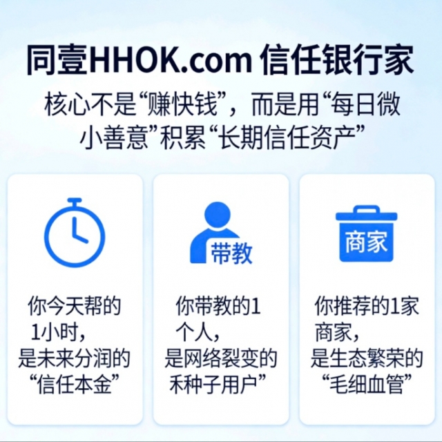 信任银行家的核心不是“赚快钱”,而是用“每日微小善意”积累“长期信任资产”——你今天帮的1小时,是未来分润的“信任本金”;你带教的1个人,是网络裂变的“种子用户”;你推荐的1家商家,是生态繁荣的“毛细血管”。
