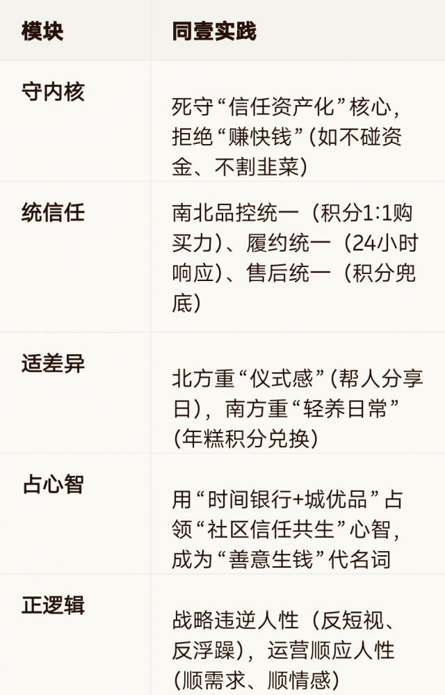 商业第二铁律:守核不迭代=等死,迭代不守核=找死。你文中批判“丢核乱跨界”的品牌(如凡客诚品丢“高性价比基因”崩塌),同壹的基因是“用信任连接个人-商家-社区,让善意生钱”——死守“信任资产化”核心,轻量化适配社区需求。