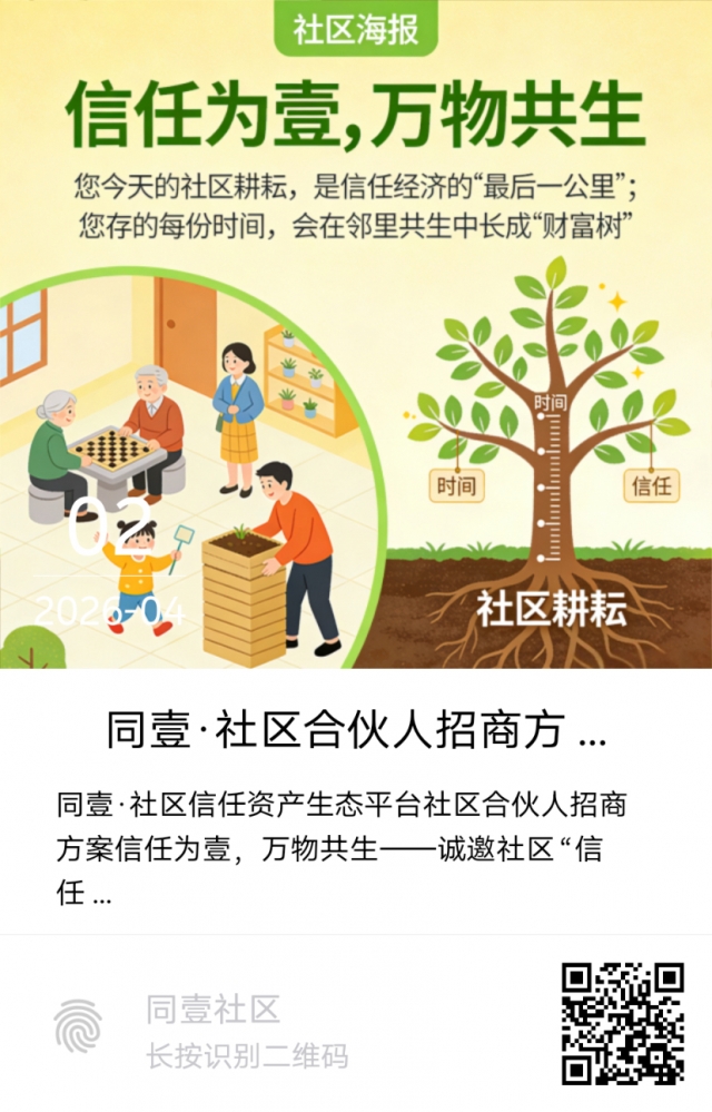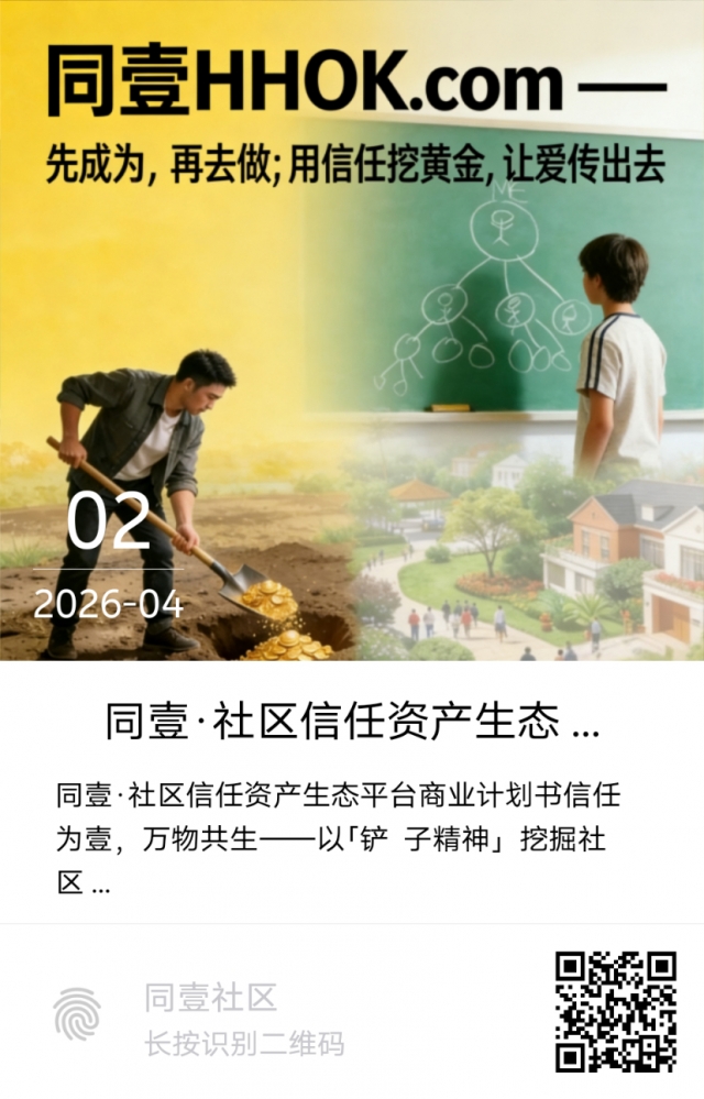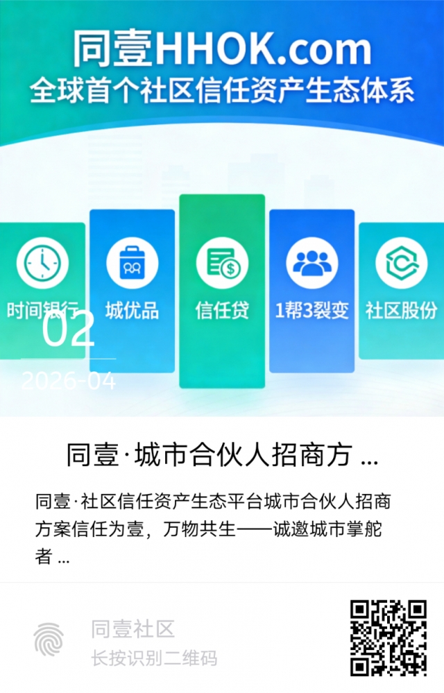 项目定位:全球首家“社区信任资产生态平台”,以“信任资产化”为核心,用“时间积分”将善意(帮人、荐商、带徒)转化为可积累、可流通、可传承的社区资产,构建“个人-商家-社区”共生闭环。