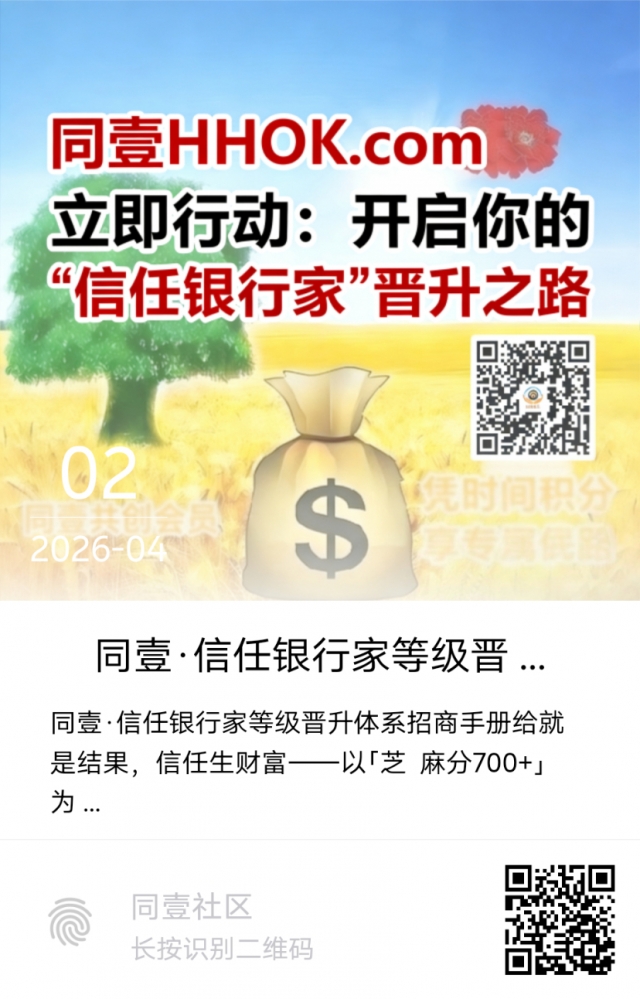 如社区图问:“社区生态遍地黄金,你是愿意看着别人挖,还是自己拿起铲子?” 同壹的“铲子”,就是信任银行家体系——以“芝麻分700+”为信用背书,让你从“观察者”变为“掘金者”。