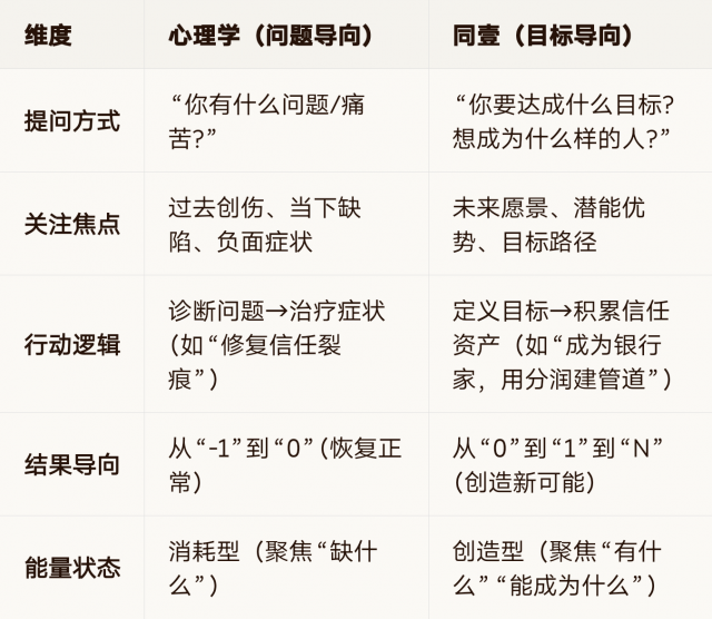 ——心理学问“你有什么问题”,同壹问“你要成为谁”;前者修复裂痕,后者种下黄金。我们用“目标”为锚,让信任成为“成为”的阶梯,让善意成为“目标”的燃料。