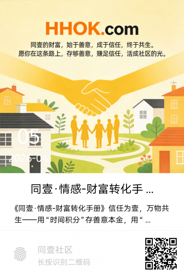 同壹的破题:不把金钱当“目标”,而把它当“情感连接的媒介”——用“时间积分”存善意,用“分润佣金”奖信任,用“社区股份”固共生,让金钱成为“情感银行”的利息,让财富增长与情感满足同频。
