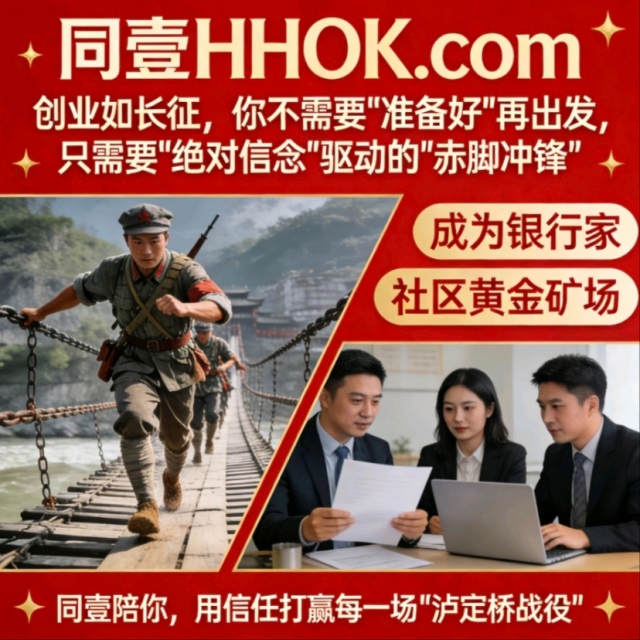 记住:创业如长征,你不需要“准备好”再出发,只需要“绝对信念”驱动的“赤脚冲锋”。同壹陪你,从“成为银行家”的第一步,到“社区黄金矿场”的终点,用信任打赢每一场“泸定桥战役”。