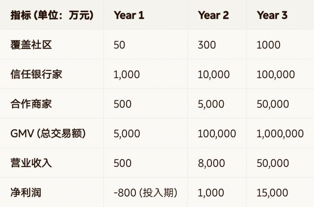 获客成本 (CAC):极低。主要依靠“1帮3”裂变,仅需激励种子银行家。运营成本:社区驿站租金(或共享空间)、银行家培训体系。