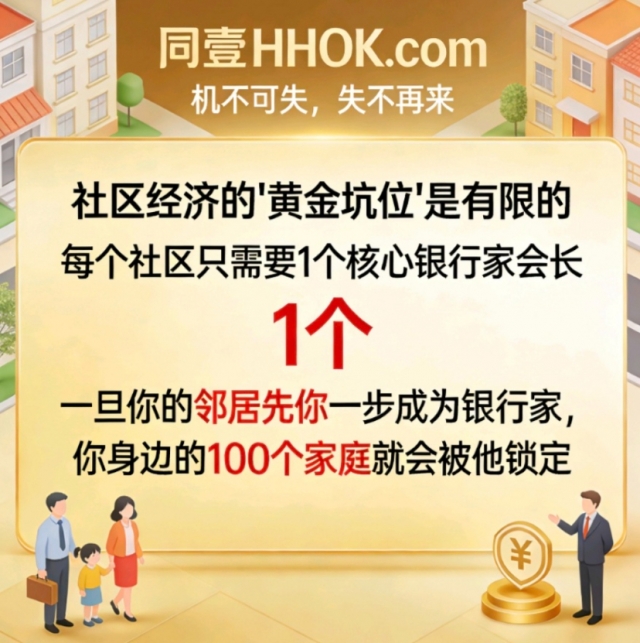 社区经济的“黄金坑位”是有限的。每个社区只需要1个核心银行家会长。