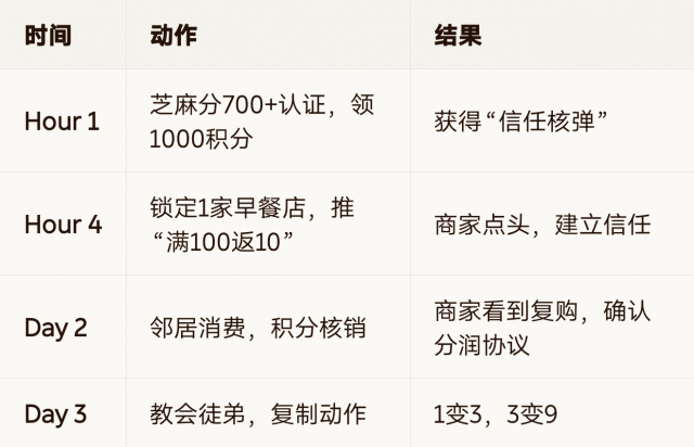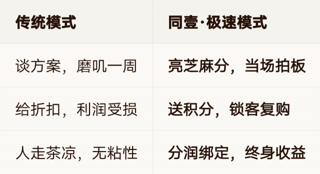 话术:“老板,我是芝麻分700+的同壹银行家。这1000积分我预授信给你做活动,满100返10。我只拿3%流水,你积分锁客稳赚不赔。”