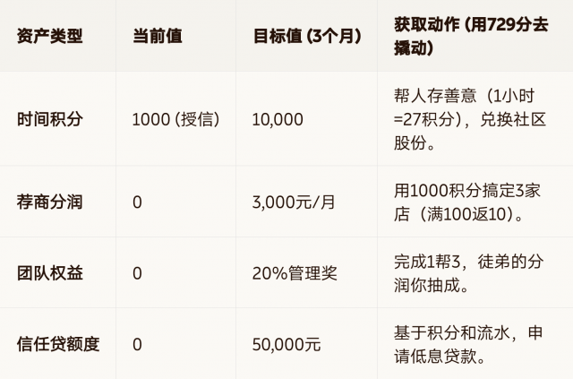 晋升路径:信任银行家 → 1帮3达标 → 社区分会会长。