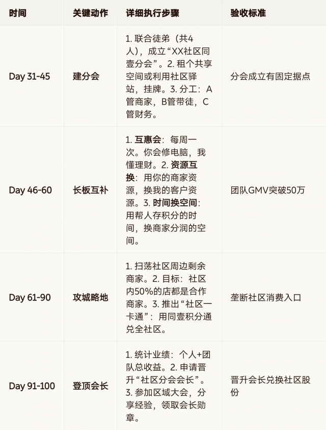 2. 话术:“我刚用100积分锁定一家店,月入几千。你也来,我带你。”