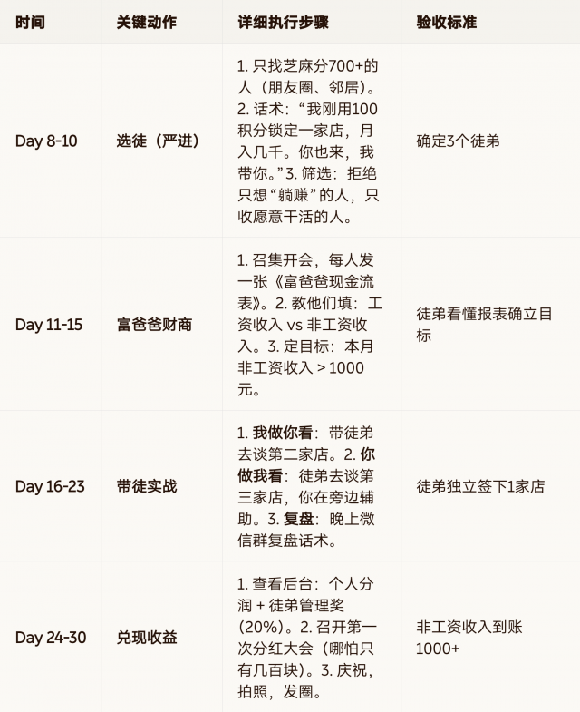 Day 24-30|兑现收益|1. 查看后台:个人分润 + 徒弟管理奖(20%)。
