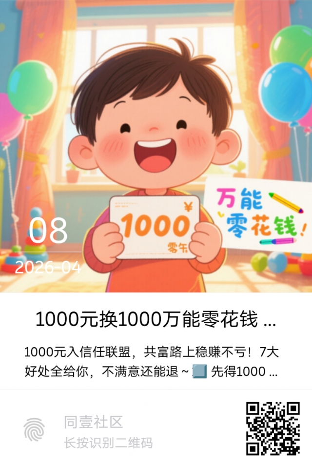 3. 领取1000积分,截图发朋友圈:“同壹银行家上线,社区信任我来扛。”