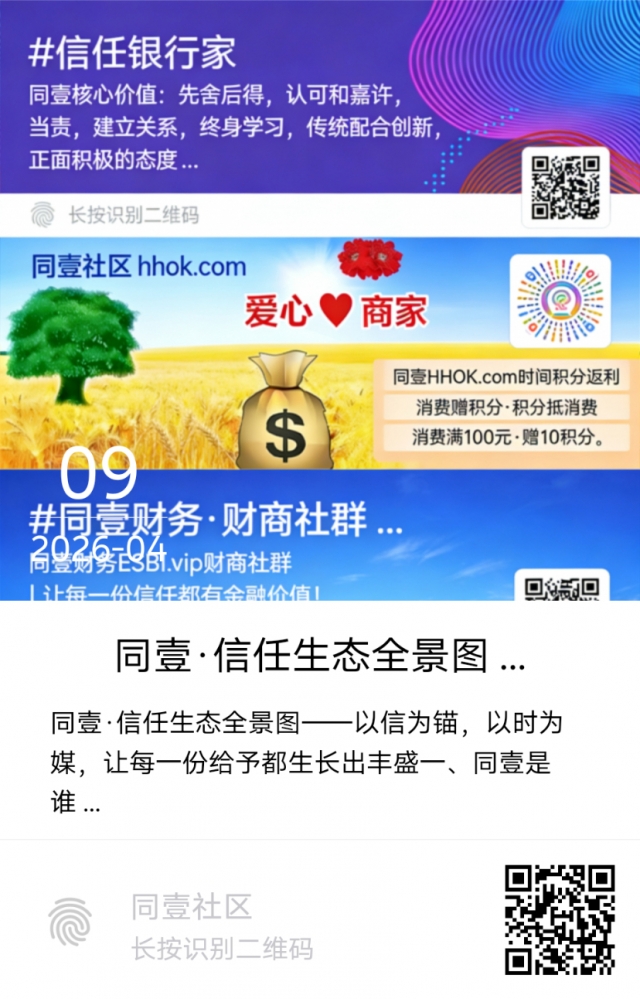 同壹:拿100积分帮商家引流,商家赚更多,分你3%。共生,所以长生。