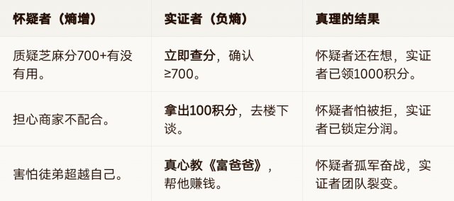 害怕徒弟超越自己。|真心教《富爸爸》,帮他赚钱。|怀疑者孤军奋战,实证者团队裂变。