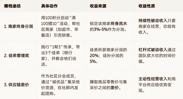 做同壹信任银行家,核心是将你的“信用”和“行动力”转化为可流通的“信任资产”,从而获得持续的非工资收入。其赚钱逻辑并非简单的销售提成,而是基于《富爸爸》财商理念,通过构建社区商业管道来获取被动现金流。