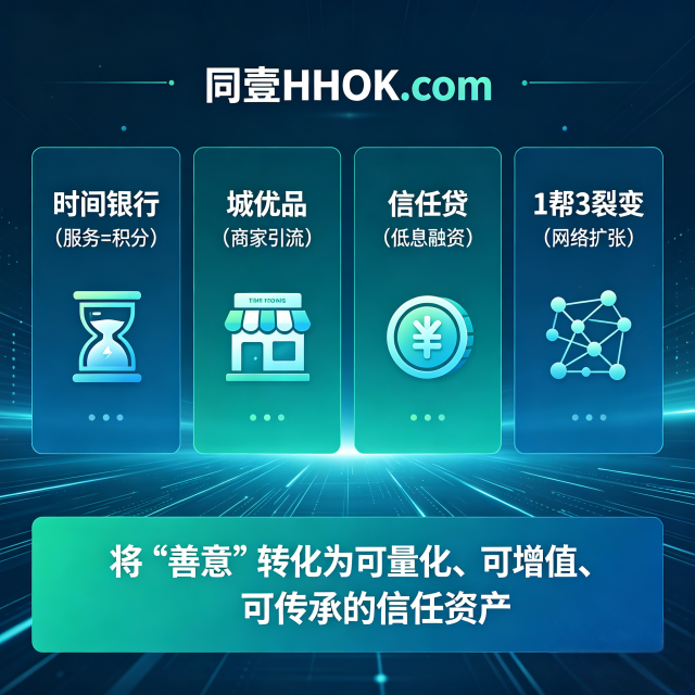 落地动作:入驻城优品享商家3%-5%终身分润;凭信任值申请0抵押低息信任贷;参与1帮3合规裂变,培育3名信任银行家;